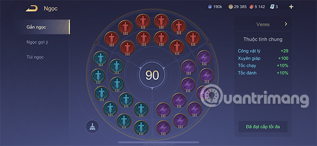 - Ngọc Tím: Tốc đánh +1% Tốc chạy +1%. Tăng tốc đánh càng nhiều sẽ càng giúp Veres sớm kích hoạt được nội tại.