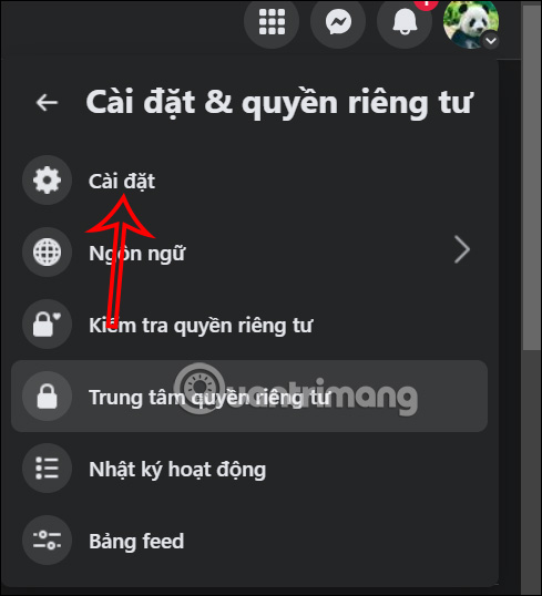 Tại giao diện Facebook trên máy tính bạn nhấn vào ảnh đại diện rồi chọn Cài đặt & quyền riêng tư rồi chọn tiếp vào Cài đặt trong danh sách hiển thị.