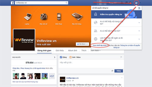 Đầu tiên, nhấn vào biểu tượng cái ổ khóa ở góc trên bên phải màn hình, sau đó chọn vào "Xem thiết lập khác".