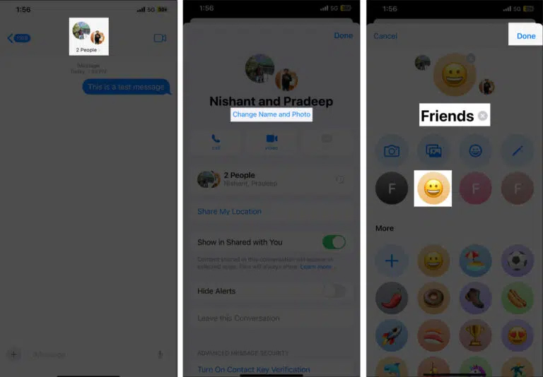 Bây giờ bạn có thể nhập tên cũng như chọn ảnh đại diện cho nhóm chat iMessage.