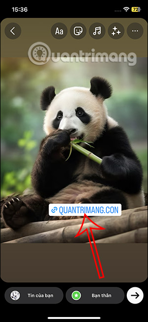 Lúc này người dùng sẽ thấy link chèn trong Story Instagram. Bạn tiếp tục điều chỉnh những nội dung khác cho video, chèn thêm nhạc cho Story Instagram hay hiệu ứng tùy thích rồi tiến hành đăng Story lên tài khoản.