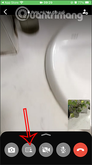 Thực hiện gọi video trên WhatsApp như bình thường. Tại màn hình gọi video bạn nhấn vào biểu tượng chia sẻ màn hình như dưới đây.