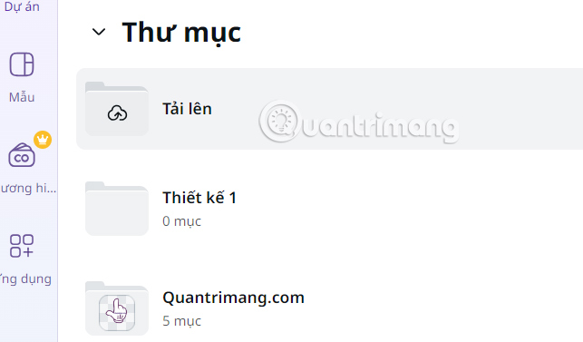 Trong giao diện trên Canva bạn nhấn vào mục Dự án ở cạnh trái giao diện.