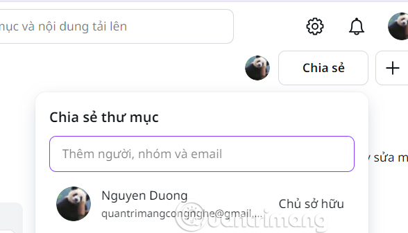 Hiển thị khung để bạn nhập email, nhóm hay người trong 1 đội muốn chia sẻ thư mục này.
