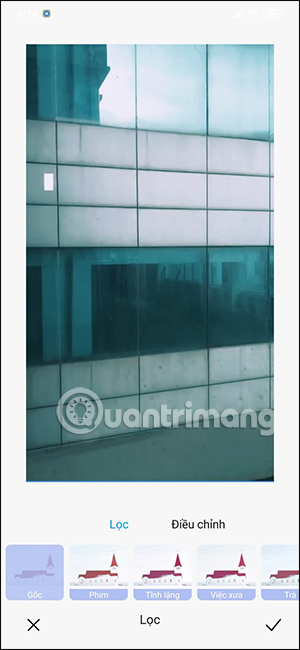 Tiếp đến nhấn vào công cụ bộ lọc để đổi màu cho video trên Xiaomi. Phần Điều chỉnh là những công cụ thay đổi ánh sáng, độ tương phản,... cho video để chúng ta sử dụng.