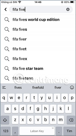 Tại giao diện Facebook bạn nhập từ khóa FIFA Fives World Cup Edition trong thanh tìm kiếm rồi nhấn vào kết quả tìm kiếm ở bên dưới.