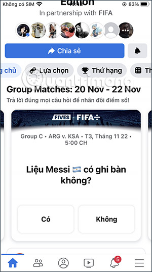 Hướng dẫn chơi game dự đoán World Cup 2022 trên Facebook