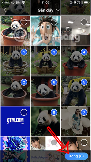 Tại giao diện trong Nhật ký trên Zalo bạn nhấn vào biểu tượng hình ảnh để đăng ảnh. Hiển thị album có trong điện thoại, bạn nhấn vào các hình ảnh muốn đăng rồi nhấn Xong ở bên dưới để chọn.