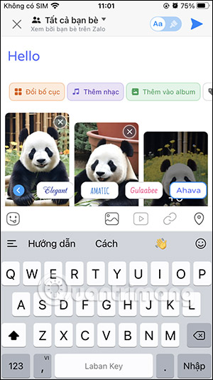 Cuối cùng bạn đăng ảnh lên Zalo với bố cục bài đăng mà mình đã lựa chọn.