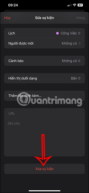 Nếu bạn muốn hủy lịch FaceTime đã lên thì chỉ cần nhấn Xóa sự kiện ở bên dưới là được.