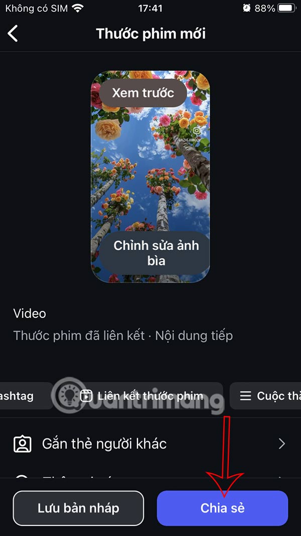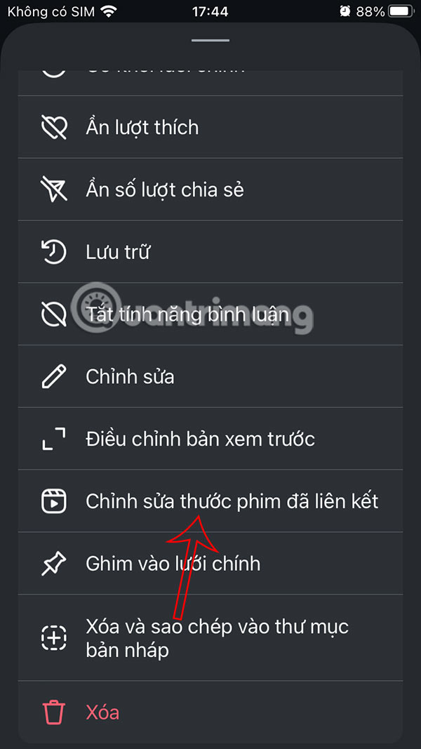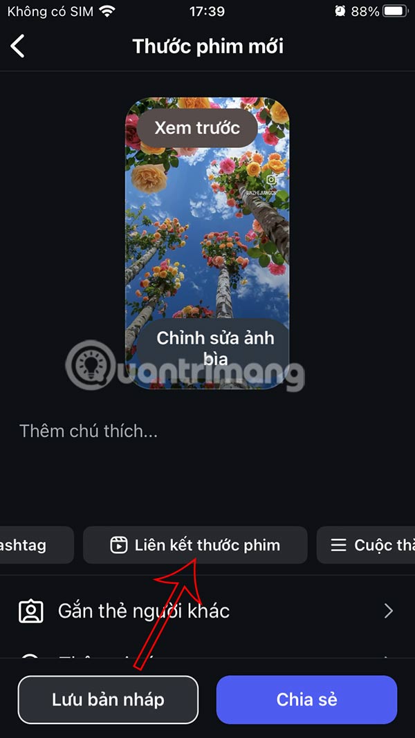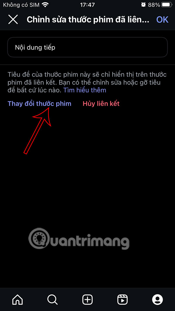 Bạn có thể tạo bài đăng video mới, hoặc video Reels mới trên Instagram. Sau đó trong giao diện tùy chỉnh đăng video nhấn chọn Liên kết thước phim.