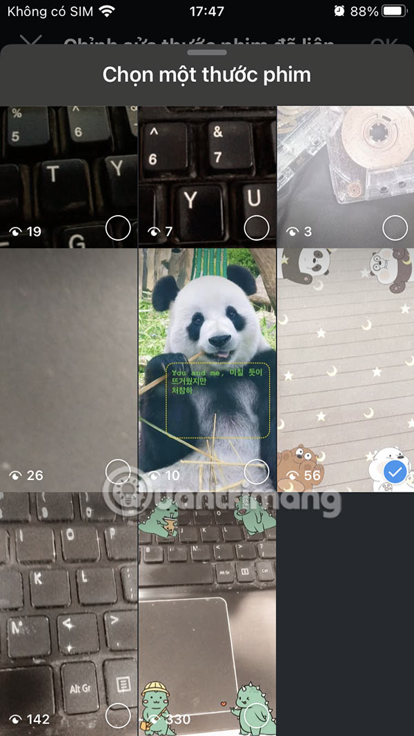 Nhấn vào video bạn muốn chỉnh sửa liên kết rồi chọn biểu tượng 3 chấm và nhấn Chỉnh sửa thước phim đã liên kết. Trong giao diện như hình bạn có thể nhấn Thay đổi thước phim để chuyển sang video liên kết khác.