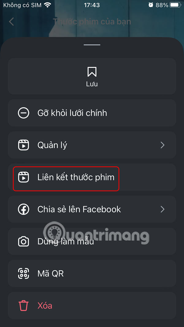 Với những video Reels đã có trước đó và muốn liên kết, bạn nhấn vào biểu tượng 3 chấm rồi chọn Liên kết thước phim. Sau đó chúng ta cũng lựa chọn video để kết nối là xong.