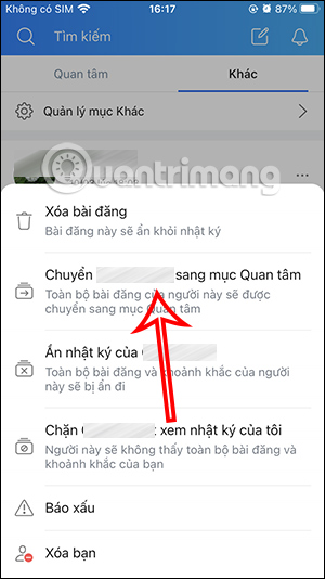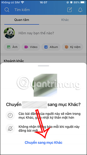 Như vậy trong mục Khác bạn sẽ thấy bài đăng Nhật ký của bạn bè. Để đưa về mục Quan tâm. chúng ta chỉ cần nhấn vào biểu tượng 3 chấm rồi chọn Chuyển sang mục Quan tâm là được.