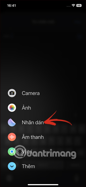 Lúc này bạn nhấn vào mục Nhãn dán để mở sticker trong tin nhắn.