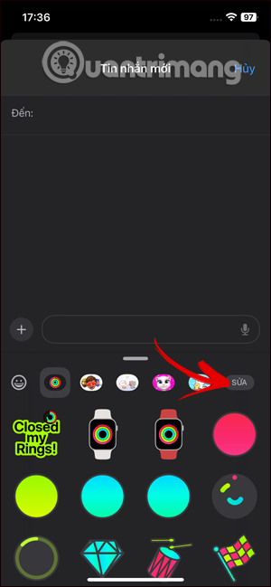 Như vậy thứ tự sticker hiển thị trong tin nhắn trên iPhone đã được thay đổi lại theo ý bạn. Cuối cùng bạn chọn sticker mình muốn dùng để gửi trong tin nhắn như bình thường.