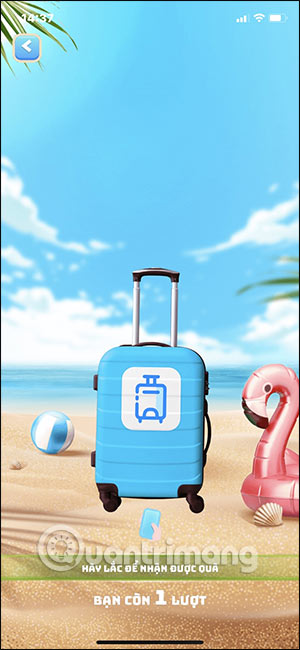 Tại giao diện chương trình bạn sẽ nhìn thấy giao diện lắc để nhận quà. Bạn sẽ có 1 lượt đầu tiên khi tham chương trình để lắc nhận phần thưởng. Hàng ngày khi bạn đăng nhập vào chương trình sẽ đều nhận được 1 lượt lắc, giới hạn 1 lần 1 ngày và 7 lần cho toàn chương trình.