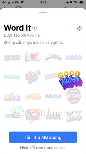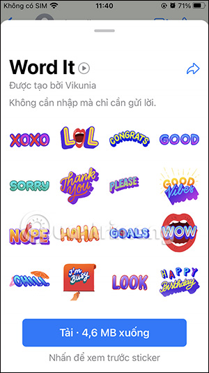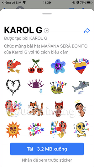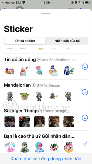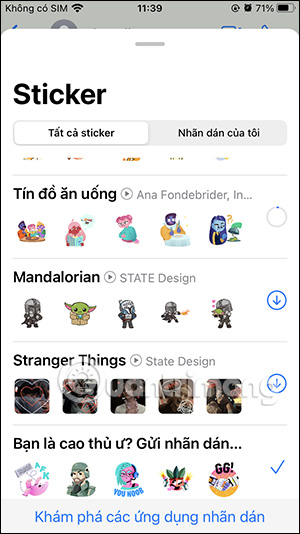 Tại giao diện này bạn có thể nhấn vào sticker để xem sticker sẽ hiển thị như thế nào.