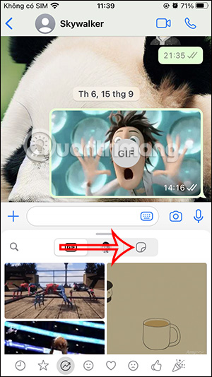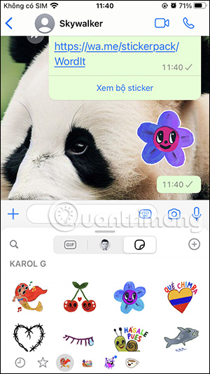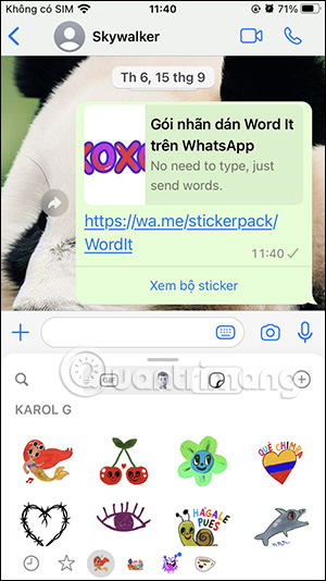 Quay trở lại giao diện nhắn tin trên WhatsApp và bạn sẽ nhìn thấy sticker mà mình mới tải xuống. Bây giờ bạn chỉ cần nhấn vào sticker để gửi cho đối phương là được.