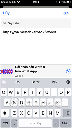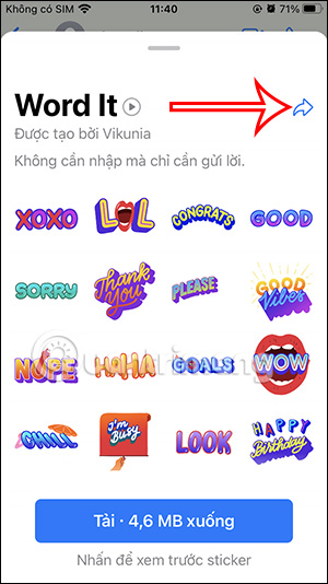 Ngoài ra bạn có thể nhấn vào biểu tượng chia sẻ để gửi sticker WhatsApp này cho bạn bè nếu muốn.