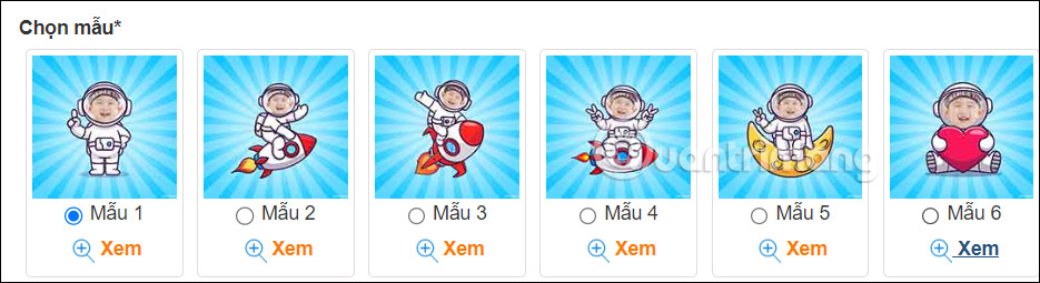 Tại giao diện trang web này, người dùng sẽ lựa chọn mẫu ảnh avatar phi hành gia mà mình muốn. Có rất cả 6 mẫu ảnh để chúng ta ghép ảnh mặt vào ảnh đại diện này.