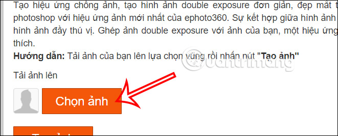 https://ephoto360.com/hieu-ung-chong-anh-double-exposure-rung-thanh-pho-480.htmlTại giao diện trang web bạn nhấn vào nút Chọn ảnh để tải ảnh cá nhân của mình lên.