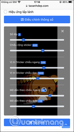 Nếu ưng ý thì bạn nhấn vào nút Tạo ảnh để tiến hành tạo hình nền sticker phát sáng trên iPhone.