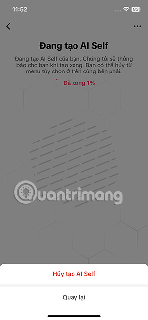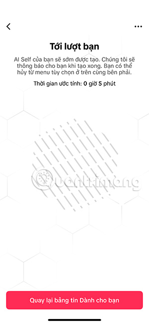 TikTok sẽ lưu lại dữ liệu khuôn mặt của bạn và lựa chọn ngẫu nhiên 1 mẫu hình tượng nào đó và tiến hành tạo AI Self trên TikTok. Trong quá trình tạo có thể nhấn biểu tượng 3 chấm chọn Hủy tạo AI Self.
