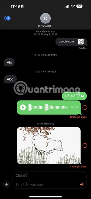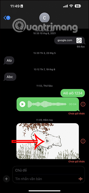 Trong ứng dụng Tin nhắn, khi bạn nhận được ảnh GIF thì cũng không phát được. Lúc này muốn xem ảnh GIF thì cần nhấn biểu tượng play để phát ảnh GIF.