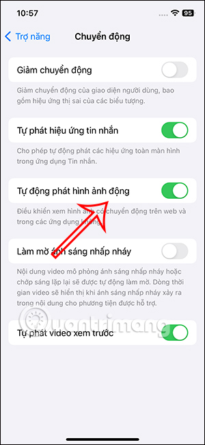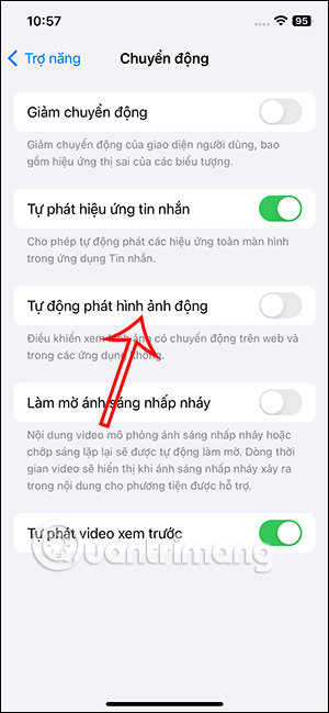 Lúc này người dùng sẽ nhìn thấy tùy chọn Tự động phát ảnh hình ảnh động để bạn điều chỉnh lại. Nếu không muốn tự động phát ảnh GIF thì bạn chỉ cần gạt nút tròn sang bên trái là được. Như vậy ảnh GIF sẽ không tự động phát trên trình duyệt.