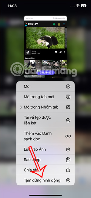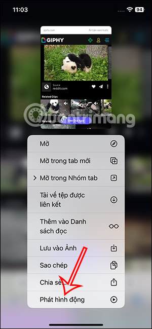 Để xem ảnh GIF thì bạn nhấn và giữ vào ảnh động rồi chọn Phát hình động. Ngay sau đó ảnh động sẽ được phát như bình thường để chúng ta xem nội dung. Để dừng phát ảnh GIF thì bạn cũng nhấn giữ vào ảnh rồi chọn Tạm dừng hình động.