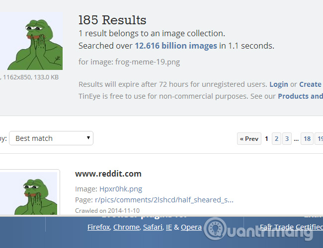 Gần như ngay lập tức, TinEye sẽ hiển thị kết quả, cùng với các thông tin đi kèm bao gồm: