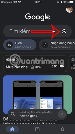 Tại giao diện trên Google bạn nhấn vào biểu tượng Google Lens. Sau đó chúng ta nhấn tiếp vào biểu tượng đồng hồ để xem lịch sử trên Google Lens.