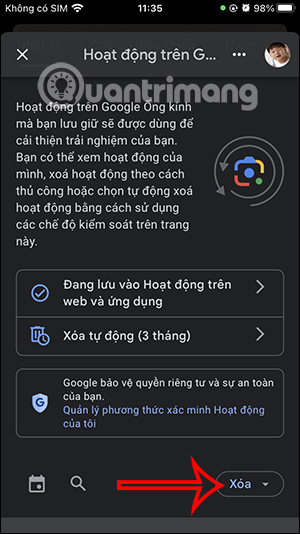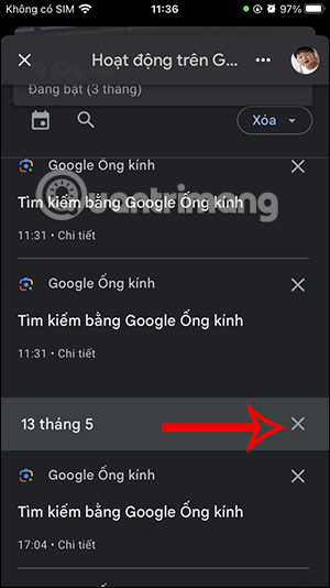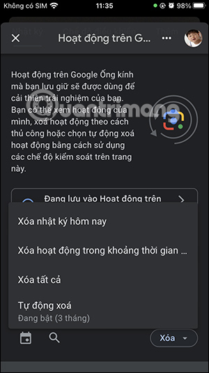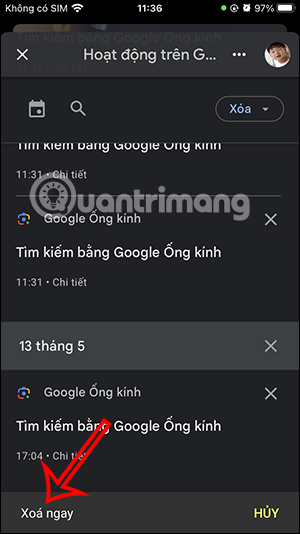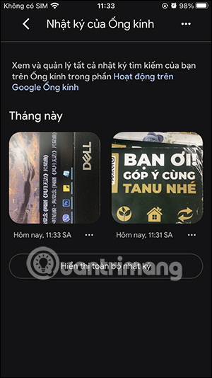 Ngoài ra ở bên dưới danh sách bạn sẽ thấy hoạt động trên Google Lens. Người dùng có thể nhấn vào biểu tượng x để xóa lịch sử cụ thể.