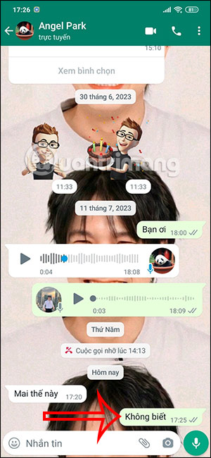 Đầu tiên chúng ta nhấn vào hội thoại tin nhắn trên WhatsApp mà bạn muốn xóa tin nhắn.