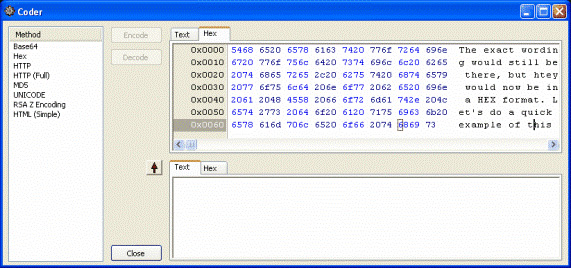 Bây giờ chúng ta có thể thấy trong phần hiển thị cửa sổ bên trong, ở phần bên trái có một số giá trị HEX, còn bên phải có một vài câu có định dạng ASCII mà tác giả bài này đã viết trong đó. Cả hai đều chỉ ý một nội dung nhưng trong các định dạng khác nhau. Chúng ta có thể cho rằng không có giá trị gì khi mang một tài liệu này và mã hóa nó sang một định dạng khác. Tuy nhiên trong một ví dụ điều đó chưa nói hết lên được các vấn đề, mã hóa thực sự sẽ như thế nào với việc hack ứng dụng web thực và trông nó sẽ ra sao? Đây là một câu hỏi thú vị, chúng ta hãy tập trung và giải quyết câu hỏi này. Những gì sẽ sử dụng cho ví dụ của chúng ta là lỗi Directory Traversal cổ điển. Nhiều bạn có thể đoán được một số từ trong chúng, những gì lỗi này cho phép bạn thực hiện là điều hướng đến thư mục cha của website.