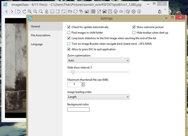Tính năng phím tắt cũng được tác giả thêm vào ImageGlass. Bạn có thể sử dụng phím Home để duyệt nhanh ảnh đầu hoặc phím END để duyệt ảnh cuối của danh sách hình ảnh. Và để thoát nhanh khỏi phần mềm, bạn chỉ cần nhấn vào phím ESC.