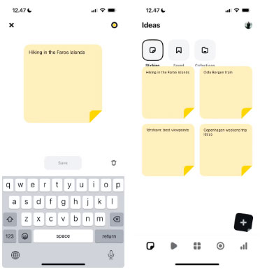 Stickies là những ghi chú kỹ thuật số mà bạn có thể sử dụng để động não bất cứ khi nào cần. Bạn có thể tùy chỉnh màu sắc, giúp phân loại ý tưởng dễ dàng hơn. Việc tạo Stickies rất đơn giản; bạn chỉ cần nhấn nút +, ghi ý tưởng của mình và nhấn Save.