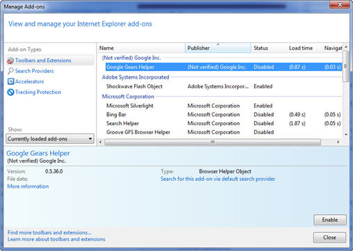 Nếu bạn nhấp vào "Vô hiệu hóa tiện ích", bạn sẽ thấy một màn hình hiển thị tên của tiện ích, các nhà sản xuất của họ và ước tính thời gian bổ sung mà chúng chiếm mất để khởi động trình duyệt, mở một tab mới hoặc chuyển hướng tới một trang Web. Thậm chí chính những tiện ích của Microsoft cũng sẽ bị theo dõi trong đó. Sau đó bạn có thể chọn vô hiệu hoá bất kỳ add-on nào để tăng tốc độ duyệt web. Đây là một công cụ tuyệt vời cho phép bạn quyết định xem khả năng của một add-on làm chậm chễ tốc độ duyệt web của bạn một cách chính xác.