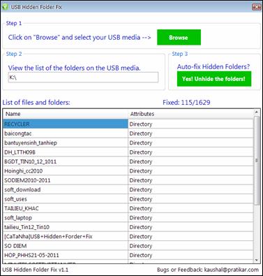 * Tool USB Hidden Folder Fix 1.1:
