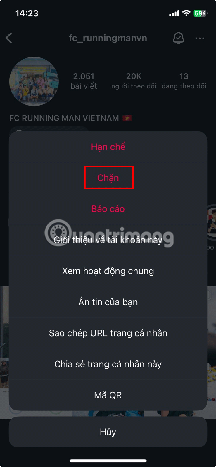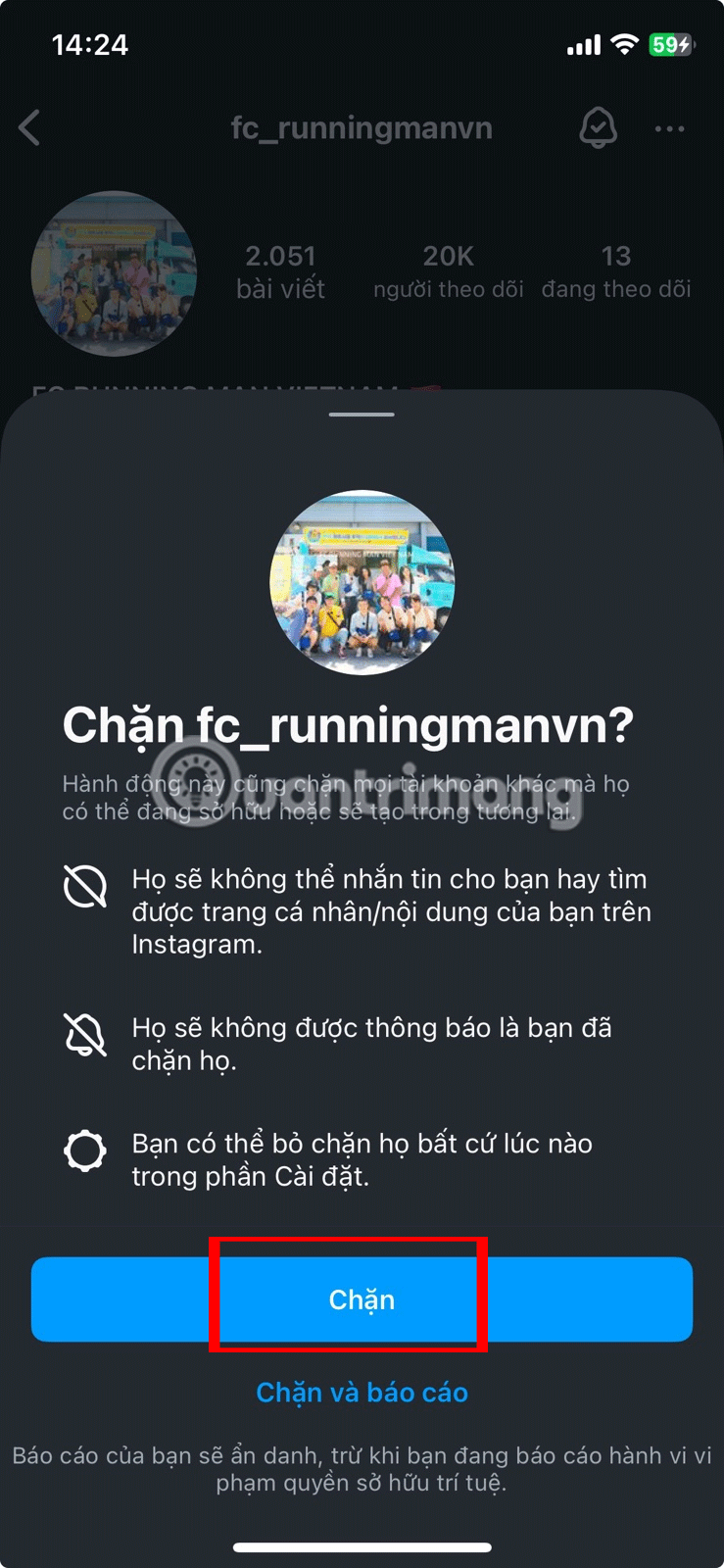 3. Chặn tài khoản Instagram