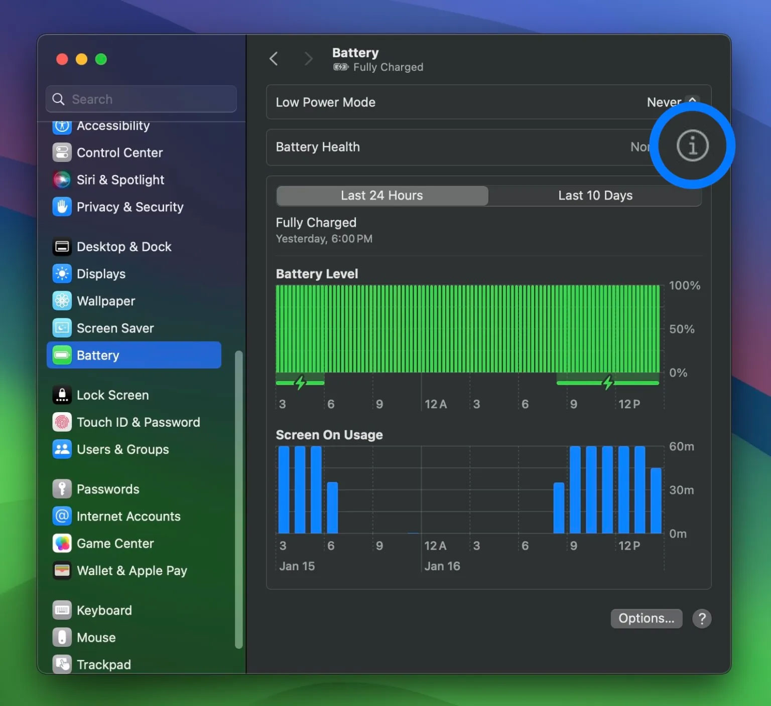 3. Bây giờ, hãy nhấp vào chữ “i” được khoanh tròn bên cạnh Battery Health.