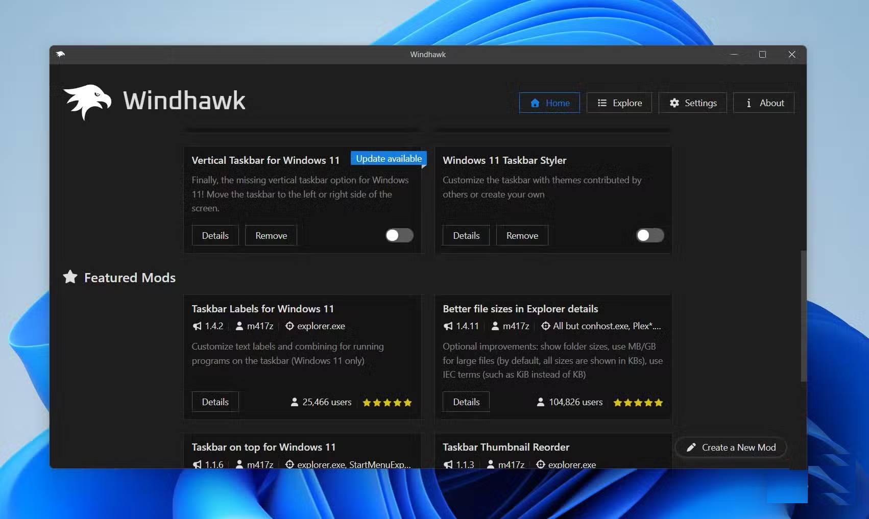Thay vì ẩn Taskbar, hãy sử dụng Windhawk để thiết kế lại Taskbar với một theme và vài tinh chỉnh nhỏ để mang lại cho nó cảm giác cao cấp, giống như một thanh dock.
