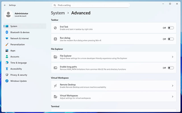 Điều thú vị là Microsoft dự định để người dùng chuyển qua lại giữa phiên bản Run cũ và mới. Một tùy chọn trong mục “Advanced” của ứng dụng Settings sẽ cho phép bật giao diện Run hiện đại, còn mặc định Windows 11 vẫn dùng phiên bản cũ – một tình huống khá giống chuyện “hai kiểu menu chuột phải” đang tồn tại song song hiện nay.