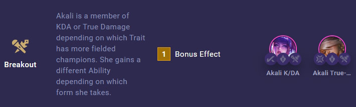 Vì sở hữu hai hệ tộc nên Akali sẽ rất linh hoạt, bạn có thể bắt đầu với True Damage hoặc K/DA đều được. Cả hai nhóm nhạc này đều có những tướng gây sát thương xuyên suốt từ đầu đến khi nào tìm thấy Akali.
