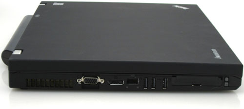Hầu hết các cổng kết nối đều được bố trí bên cạnh trái, bao gồm ba cổng USB xếp liền nhau, một cổng VGA, một cổng DisplayPort, một cổng cắm mạng LAN cùng các khe cắm ExpressCard/54 và PC-Card. Bên cạnh phải, ThinkPad T500 được trang bị ổ đĩa quang DVD và cổng kết nối với modem. Giắc cắm sạc pin cho máy được bố trí ở cạnh sau.