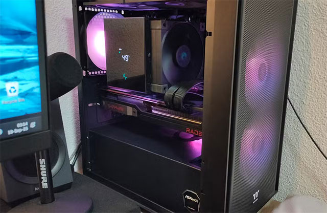 Không chỉ nhiều, các dây này còn cứng và được bọc chung, khiến việc gập và giấu chúng càng trở nên khó khăn. Sau khoảng 15 phút “vật lộn”, tôi nhét được phần lớn dây thừa vào các khay ổ trống trong case. Nhưng rắc rối chưa dừng lại ở đó: tấm hông vẫn không đóng lại được vì phần dây bị đội lên. Cuối cùng, tôi buộc phải nhồi mọi thứ chặt hơn nữa – dù bản năng mách bảo không nên – trước khi có thể đóng case và hoàn tất việc lắp ráp.