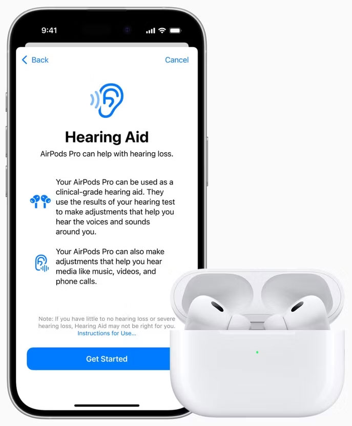 Cuối cùng, AirPods Pro 2 cũng có thể hoạt động như một thiết bị trợ thính dành cho người dùng bị mất thính lực từ nhẹ đến trung bình - tính năng này cũng đã được FDA chấp thuận.