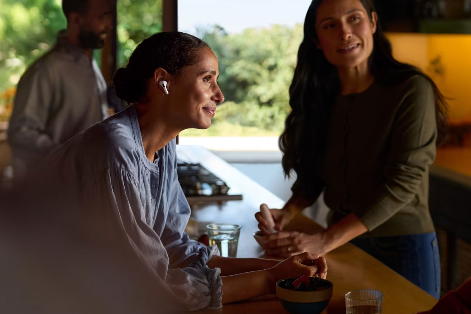 AirPods Pro 2 cao cấp hơn của Apple có thể sử dụng micro định hướng beamforming kết hợp với sức mạnh tính toán của chip H2 để giúp bạn dễ dàng nghe thấy người khác nói gì khi trò chuyện trực tiếp.