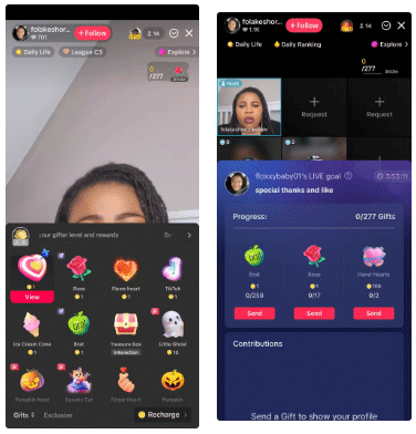 Tặng quà và tiền típ ảo tập trung vào khía cạnh người sáng tạo của các giao dịch mua trong ứng dụng, giúp người sáng tạo có cách kiếm tiền trực tiếp từ người hâm mộ của họ. Trong khi người dùng mua tiền xu hoặc token để gửi quà tặng kỹ thuật số, người sáng tạo nhận được những món quà này dưới dạng tiền típ, sau đó họ có thể chuyển đổi thành tiền mặt.